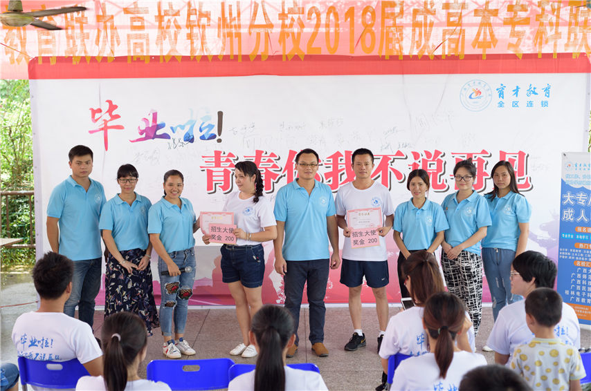 8月4日,育才教育聯(lián)辦高校欽州分校2018屆成高本??飘厴I(yè)典禮順利舉行。典禮結(jié)束后,欽州分校精心策劃組織了一場(chǎng)豐富多彩的師生聯(lián)誼活動(dòng),以多姿多彩的方式歡慶和紀(jì)念這一個(gè)特殊的時(shí)刻,來自育才聯(lián)辦廣西大學(xué)、廣西師范大學(xué)、廣西教育學(xué)院、桂林電子科技大學(xué)、湖南中醫(yī)藥大學(xué)的畢業(yè)生代表參加了活動(dòng)。