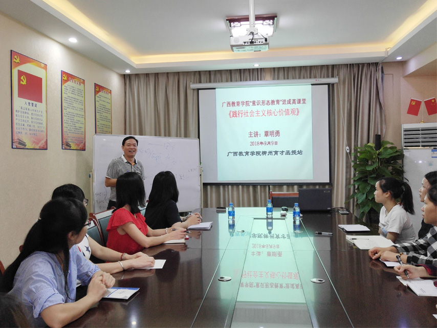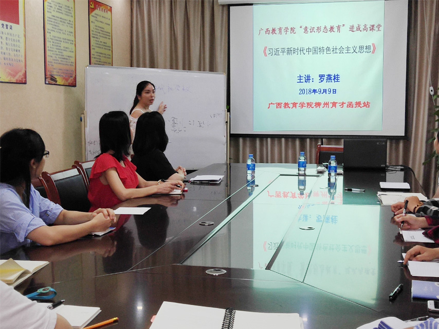 9月9日,廣西教育學(xué)院成人教育學(xué)院覃明勇主任到育才柳州總部召開“意識形態(tài)教育”進(jìn)成高課堂座談會,育才函授站部分老師代表參加了座談會。