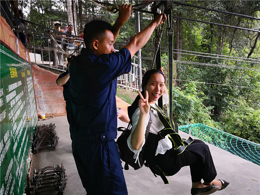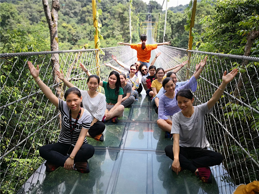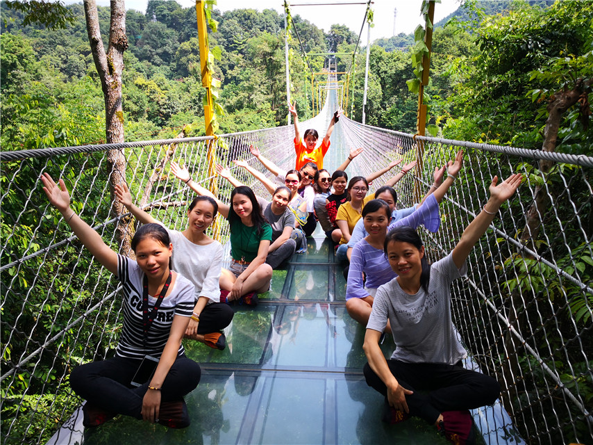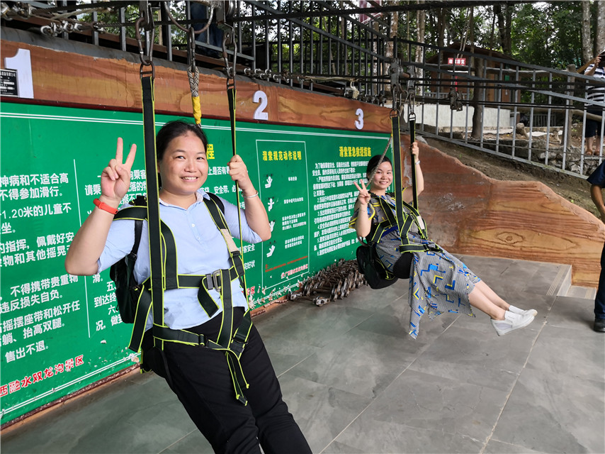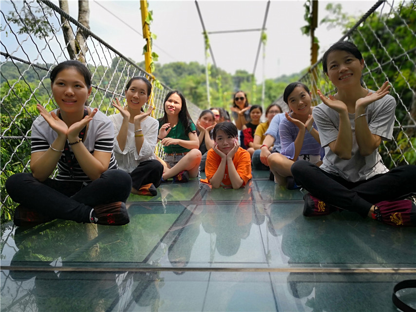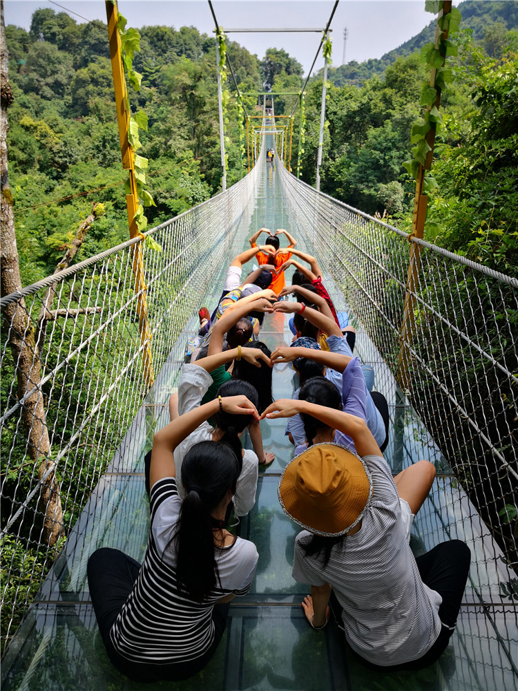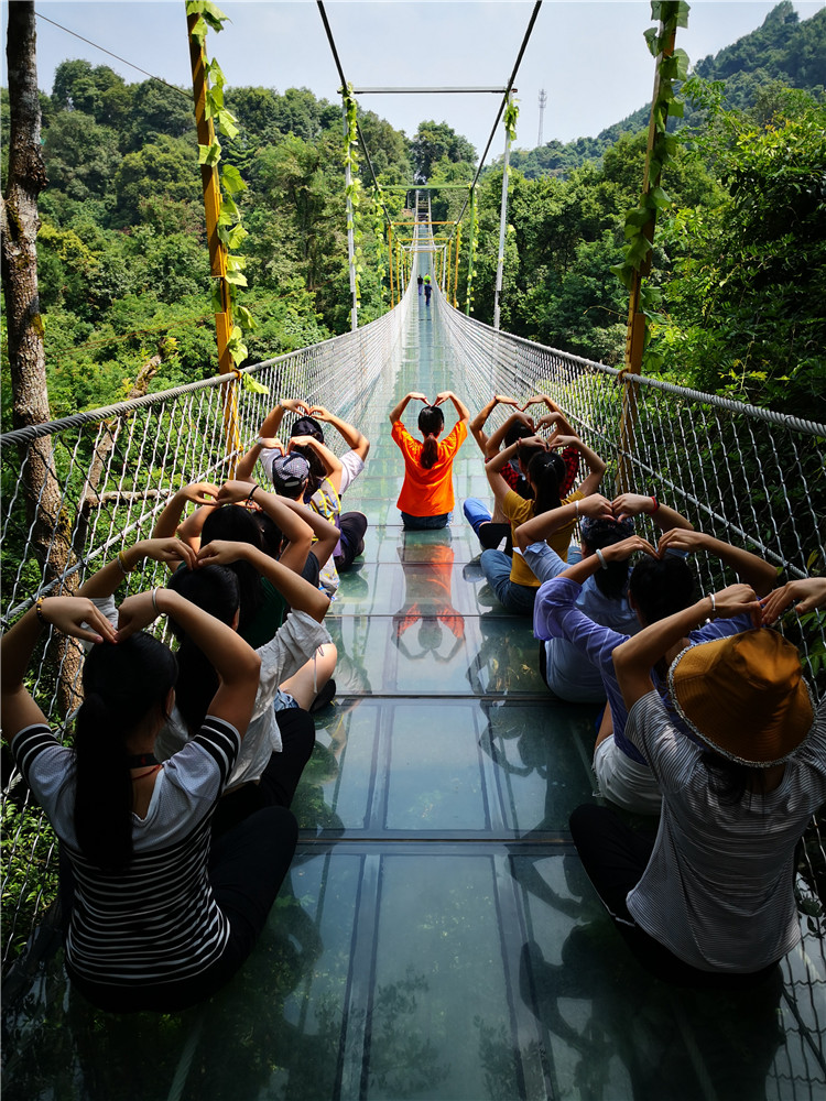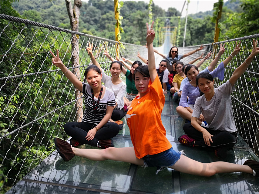 在此次活動中,設(shè)置了創(chuàng)意造型比賽和趣味抖音短視頻拍攝比賽,劈叉、心形、雙V、樂搞、戲精……多才多藝的育才人,把雙龍溝懸索玻璃橋變得多姿多彩,團(tuán)隊(duì)隊(duì)員們還結(jié)對體驗(yàn)了驚險(xiǎn)的高空滑索項(xiàng)目,進(jìn)一步開發(fā)自身的潛力,歡樂不斷,收獲不停。