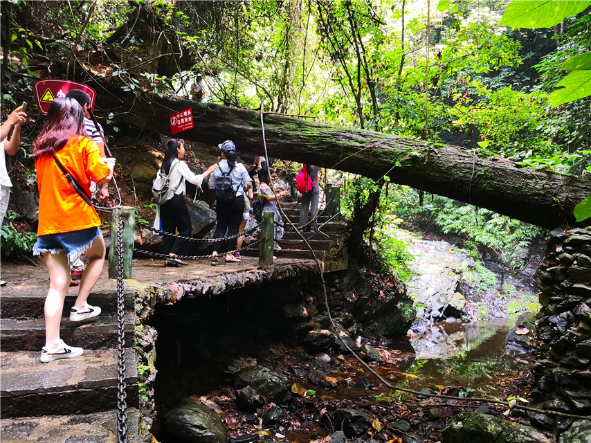 融水雙龍溝有五奇:樹、藤、瀑、橋、溪,即樹木悠古、藤奇百繞、瀑飛涓秀、橋情綽影、溪流潺潺,其中廣西首座玻璃懸索橋?yàn)榫皡^(qū)亮點(diǎn),而要到達(dá)玻璃橋“這個彼岸”,必須登山行進(jìn)一定的距離,大家組成登山團(tuán)隊(duì),互相協(xié)助,在游覽的過程中,身體和毅力都得到了鍛煉,沿途的瀑布群、高山空中棧道、古樹叢林等美好風(fēng)景,都是努力的收獲,但更讓人開心的是到達(dá)彼岸之后的分享和共融,這也是團(tuán)隊(duì)繼續(xù)向下一個彼岸進(jìn)軍的動力。
