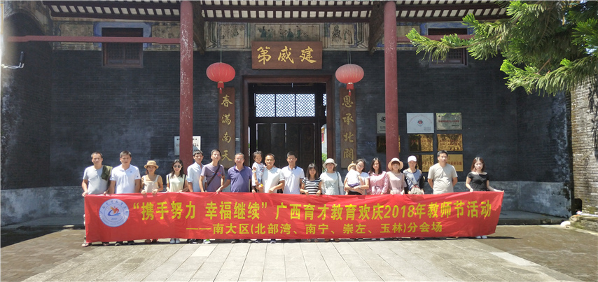 攜手努力,幸福繼續(xù)。9月19日,廣西育才教育北部灣、南寧、崇左、玉林分校2018年教師節(jié)主題活動在欽州精彩舉行?;顒觾?nèi)容包括互動游戲、參觀劉永福、馮子材故居、歡樂聚餐等環(huán)節(jié)。通過一系列活動豐富了教職員工的課余生活,調(diào)動了積極性,讓老師們以更好的心情和狀態(tài)投入到2018-2019新學(xué)期的工作中。