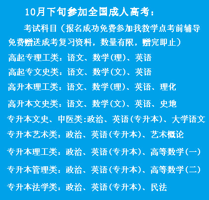 3、成人高考時(shí)間:10月下旬?!】记拜o導(dǎo)班:7月中旬開(kāi)始。